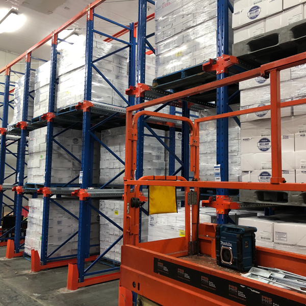 Drive-in Pallet Racking creates efficiencies by reducing aisle loading and unloading times, yet allowing greater access compared to block-stacking. Positioning pallets on front-to-back rails allows rows to be stacked next to each other safely and efficiently; crucial for items regarded as fragile or unstable.